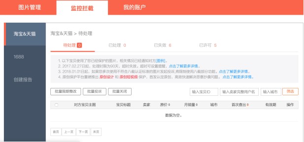 店铺被盗图后会在自动监控里看到被盗图的情况,可以手动投诉,如遇到系统没有自动识别的盗图,也可以创建报告-提交商品id进行审核。