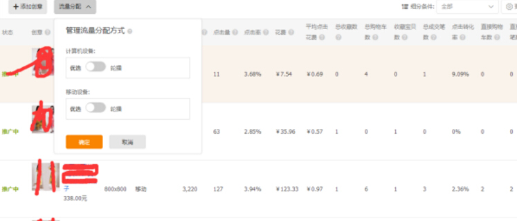 如果你的某个创意的投放重点是PC端,并且数据表现不好,那么你可以将PC端的投放暂时关闭,然后来到关键词投放页面刷新,如果发现有关键词的质量分值有上升,那么这个创意就暂时不要删除(除非你能确定更换的创意会比原创意更好,并不在乎质量分的上升或者下降),继续按照原计划开车,流量分配方式选择优选,过一段时间再重新查看,确定是否替换或是删除。